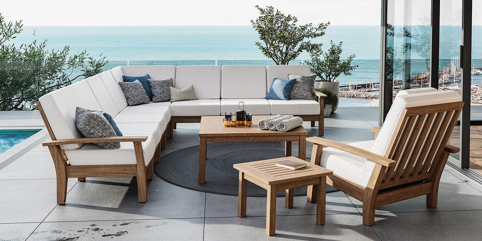Relax in enduring luxury with outdoor furniture meticulously fashioned from grade-A teak wood and high-performance outdoor fabrics, blending natural beauty with outstanding resilience for coastal and garden lifestyles.